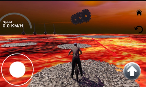 惊险自行车是一场高质量的自行车竞技挑战。玩家将骑上自行车飞速前进,但前方的赛道布满了各种障碍,像炽热的岩浆、巨大的摆锤等都在等着考验你。只有精准把握时机,才能顺利穿越这些险阻。而你的唯一目标,始终是抵达终点线,如此便能完美通关。