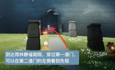 穿过门后就能看到发光的祖先,它位于左上角的亭子处,靠近该祖先进行重温操作即可。