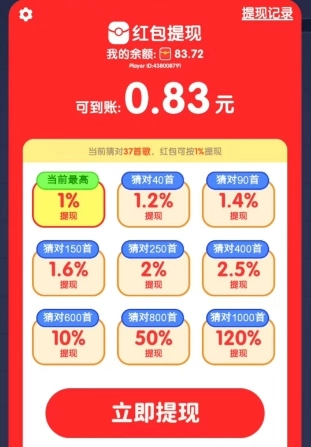 1、歌曲可是有几十万首,并且都是比较流行的,不断的尝试竞猜,这样也能了解更多的歌曲知识。