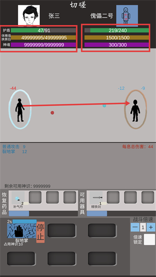 3、参与【切磋】时,要留意自身的【护体-4791】和【傀儡二号-219/240】这两项属性,同时把控好普通攻击的节奏,避免护体先出现破损的情况。