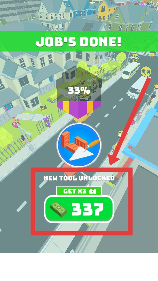 完成关卡后,界面会显示解锁了新工具以及获得337金币的奖励,点击对应的区域领取奖励,即可准备进入下一关卡。