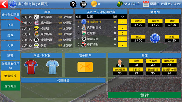 3、对球员开展训练并提升其足球技能(如射门、传球、运球、防守等),以此提高球员的自身价值以及他们所能创造的收益。