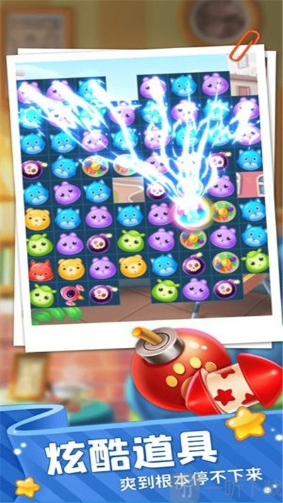 游戏里准备了琳琅满目的道具供玩家随心挑选,每个元素都有着独一无二的造型,模样软萌讨喜,能给玩家带来舒适的视觉享受。只需点击屏幕把相同的元素凑到一块儿,就能触发消除机制。这款游戏在经典消除玩法的框架下融入了新颖的设计,让玩家收获不一样的游玩体验。