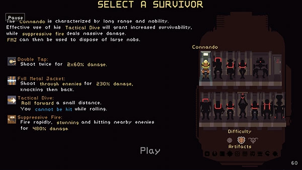 图像风格:游戏使用点像素风格,但不影响其游戏玩法。随后的游戏如《雨中冒险2》采用了3D视角和卡通渲染。