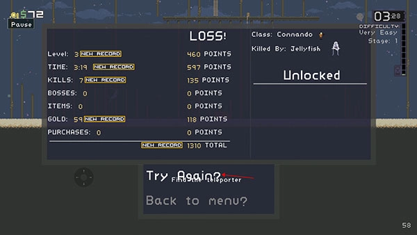 8. 此时可以选择点击“Try Again”重新挑战,或者点击“Back to menu”返回主菜单。