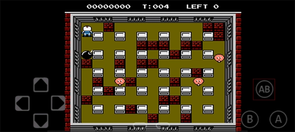 3、接着点击“AB”就能投放炸弹,点击左边的方向盘就能离开,要是被粉色小怪喷到就可以重新开始游戏。
