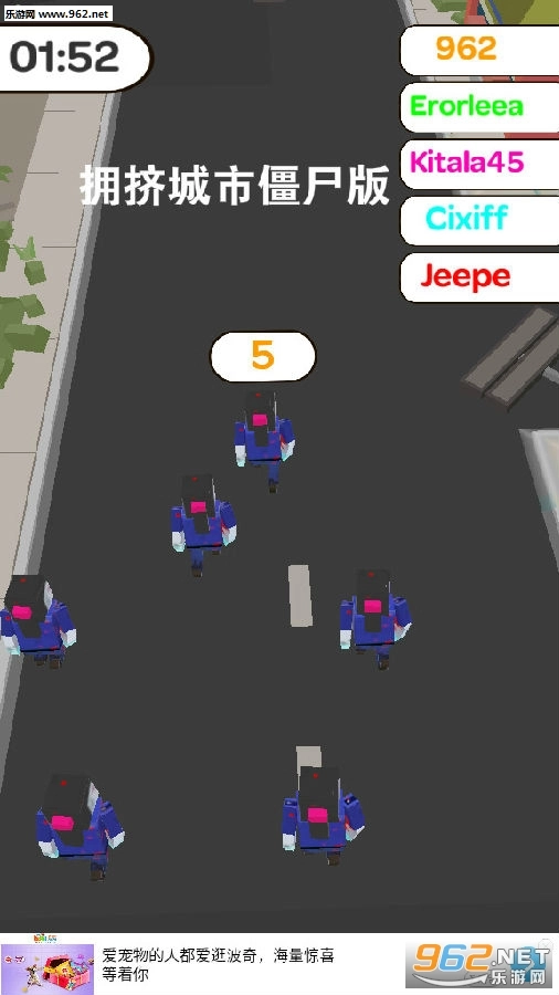 《拥挤城市僵尸版游戏》是一款十分有趣的僵尸题材io游戏。它延续了热门的拥挤城市主题,将所有角色都设计成像素风格的僵尸形象,进一步提升了游戏的趣味性和可玩性。游戏玩法保持不变,玩家需要操控僵尸不断吞噬小僵尸来壮大自己的队伍,进而与其他玩家展开对战。感兴趣的玩家欢迎体验!