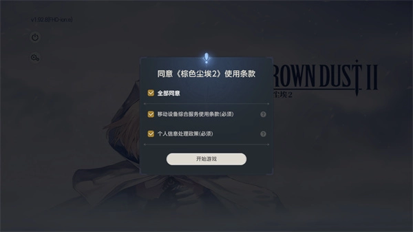 打开游戏后,记得同意授权,点击最上方的“全部同意”按钮,接着选择开始游戏。