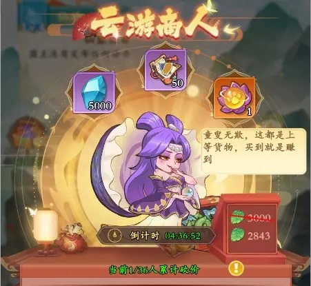 3、仙盟里偶尔会有云游商人前来拜访,他每天都会带来不一样的商品,仙盟中的各位道友都能参与砍价,每一次砍价都会让商品价格有所下降。只要大家齐心协力一起砍价,甚至能把商品价格砍到负数,这样还能额外获得仙玉呢,道友们可别忘了喊上小伙伴们一起砍价呀~