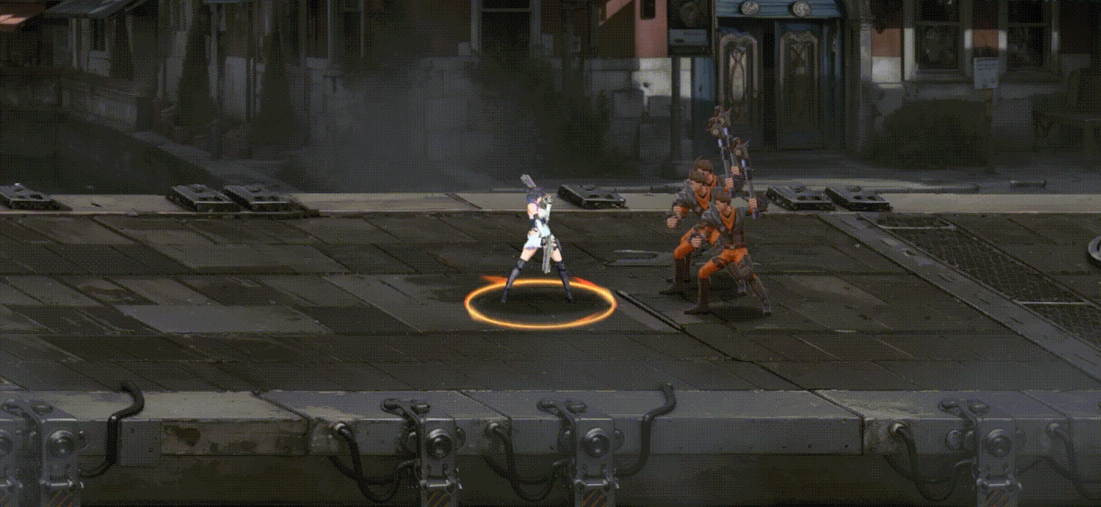 向前滑铲并把敌人打飞到空中,这种动作常作为连招的起始环节,后续可以衔接【浮空射击】【无尽射击】这类主要输出技能来完成伤害输出。