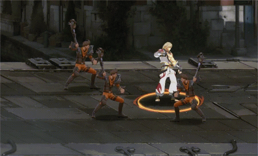 短暂积蓄力量后,向前奋力挥击敌人,能将敌人猛地向后击飞很远。