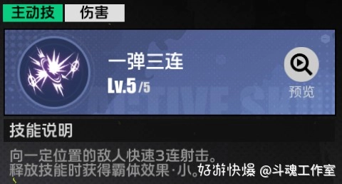 快速的三连射击,很适合当作远程消耗技能来用,而且点到觉醒状态后还能提升暴击伤害。