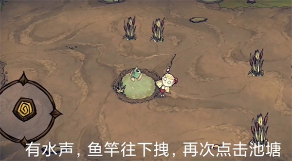 2、然后可以不同探索地图,找到一个池塘,只要点击一下就能开始钓鱼。