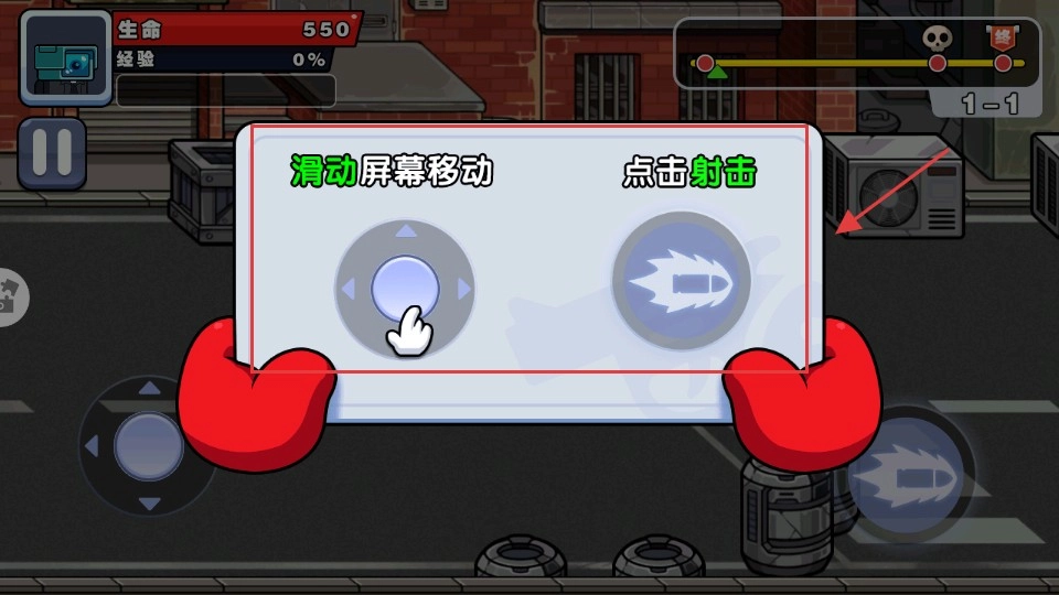 2、通过【滑动屏幕移动】操控角色,【点击射击】键攻击,熟练操作以高效打击丧尸。
