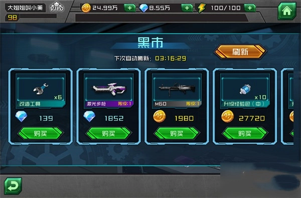 月卡、终身卡、VIP特权、开宝箱、黑市交易、黄金扳手道具,不管是小R、中R还是大R玩家,都能玩得不亦乐乎。