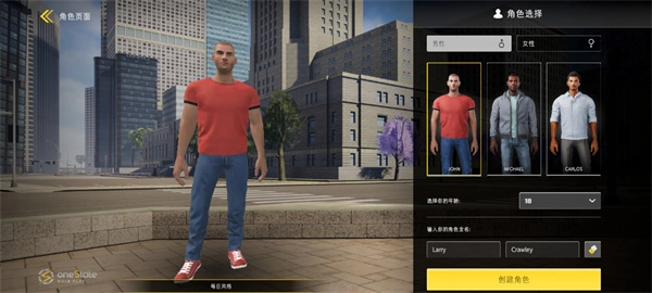 进入游戏后会出现一个角色选择界面,可选择男性或女性角色,在此处修改的名字将成为你在游戏内的名称。