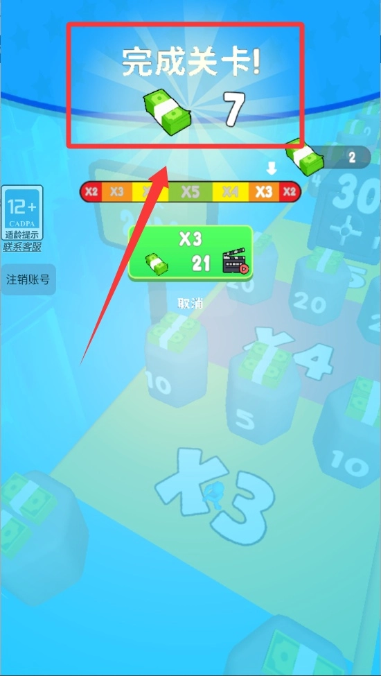 通关后会自动弹出奖励界面,7枚金币将依次飞入右上角的钱包,与此同时,下一关的入口按钮会解锁并开始闪烁。
