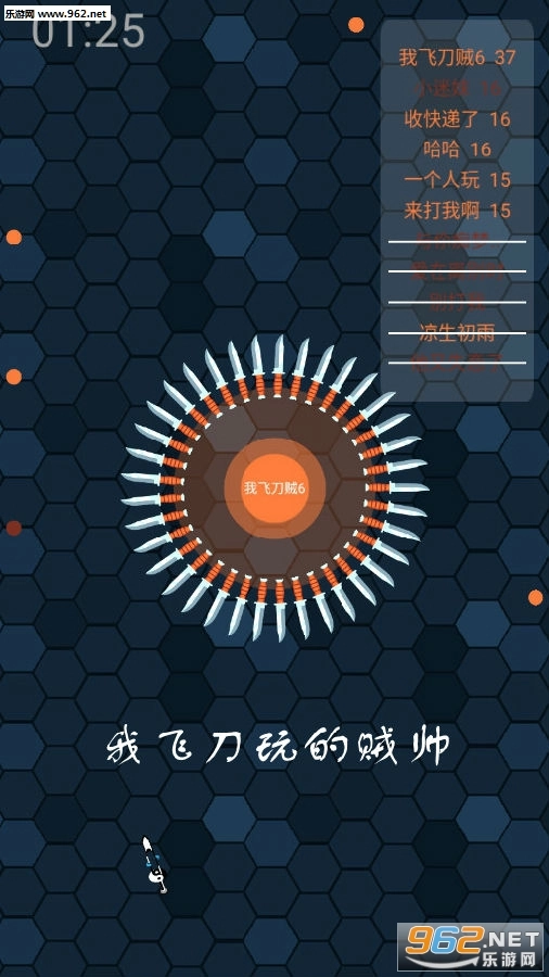 《我飞刀玩的贼帅》是一款多人竞技io游戏。在游戏里,玩家操控自己的飞刀在地图上收集更多飞刀,以此来扩大自己的飞刀圈——飞刀数量越多,战力就越强。地图中可收集的物品不少,但要注意避开黄色铁块,它会击落你的飞刀。此外,你还能攻击比自己小的飞刀圈,力争成为场上的霸主。