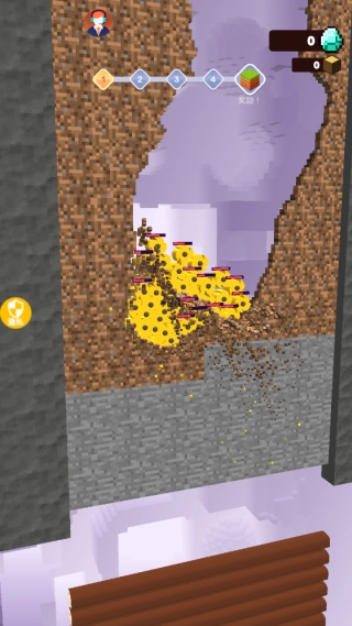 玩家需操控齿轮的挖掘方向,使其在向下行进时收集到各类BUFF。