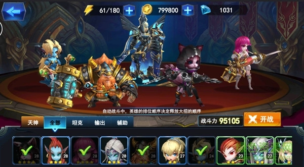 《勇者打不死》的阵容位置包含以下几类:天神、坦克、物理输出、法术输出以及奶妈。