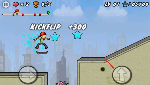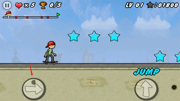 当无法继续前进时,也可以点击右侧的跳跃按钮,这样就能让角色跳起来。