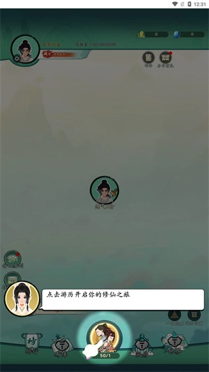 2、正式踏入修仙之路后,选择下方的游历功能,会触发各类随机事件。
