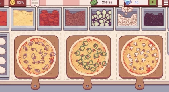 游戏画风讨喜、有趣的音效或许是各位颜党关注的要素,不同性格的顾客在表情和形体上在简单的线条勾勒和颜色上都有着很具象的体现、各种披萨材料的细节也可圈可点。