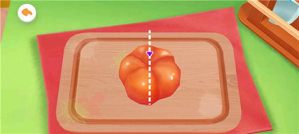 2、根据提示进入,拉动屏幕中的虚线,将西红柿切开。