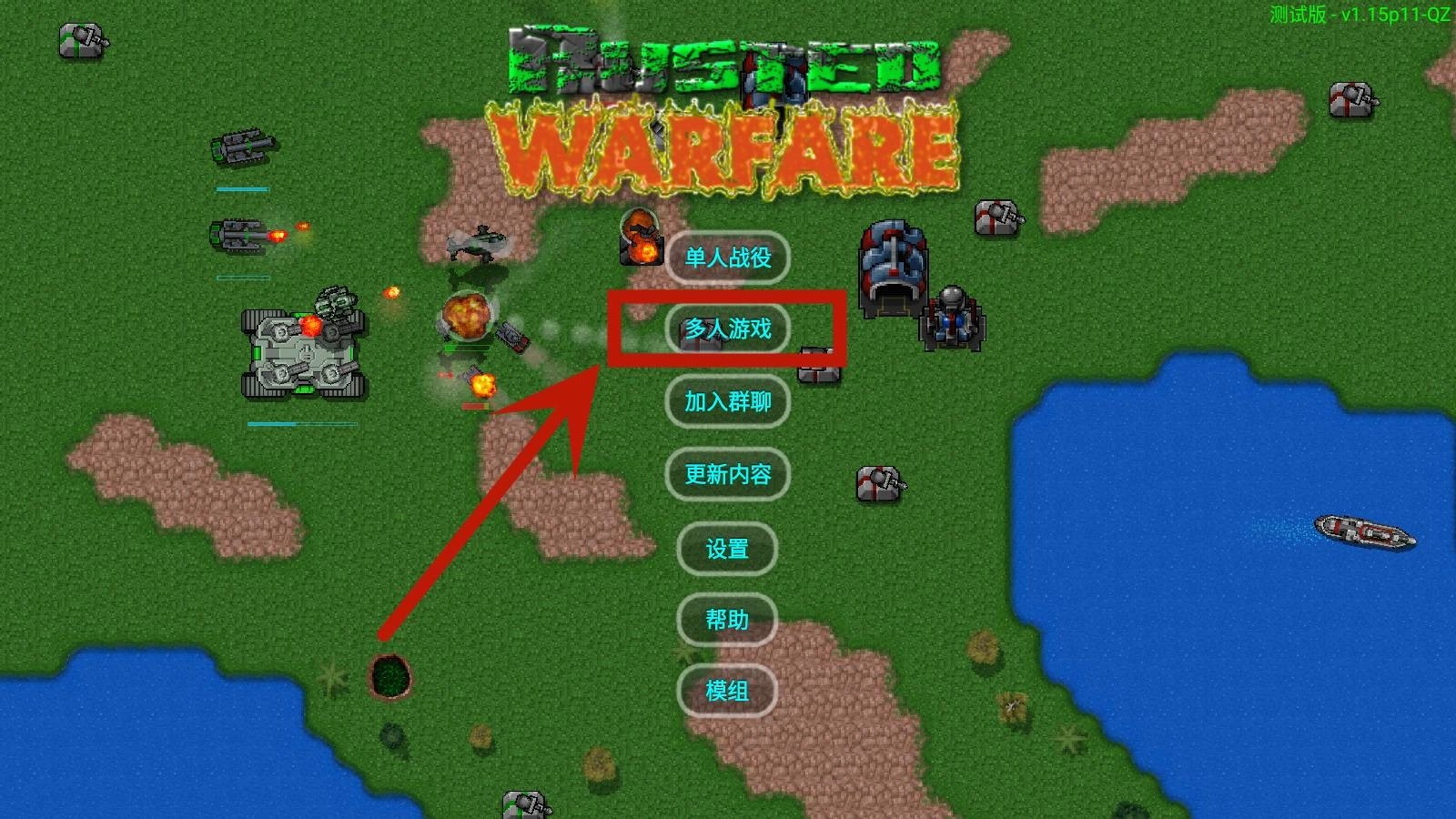 1、好的,铁锈战争中文版,打开游戏后,点击【多人游戏】选项。