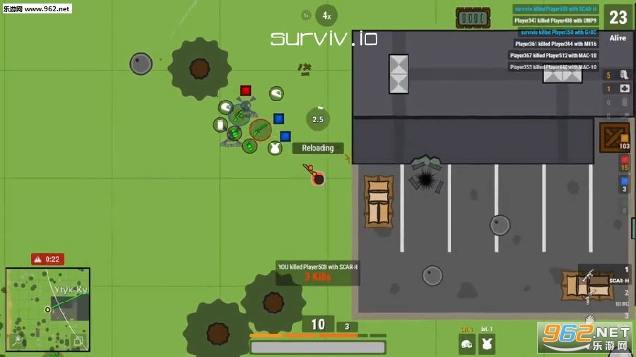 这是Battle Royale富有激情的3至5分钟体验。没有大厅,也没有拖沓的下降环节。在surviv.io里,你永远处于战斗状态!