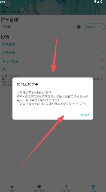 1、打开个人主页,点击“添加饼干”旁的问号图标,查看具体教程;