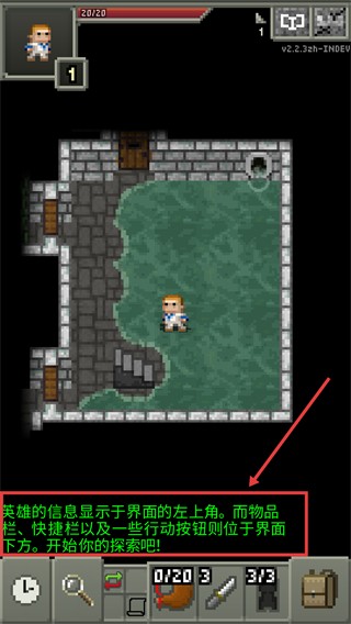 2、左上角显示英雄信息,下方物品栏与快捷栏可存放道具,利用这些界面元素高效推进地牢探索进程。
