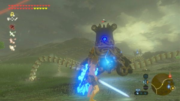 在这种状态下,守护者会待在原地纹丝不动,对林克毫无攻击意图,就算我们主动攻击它,它也不会做出反击。