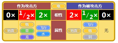 电系克飞行、水,弱点地面,抵抗飞行、电、钢