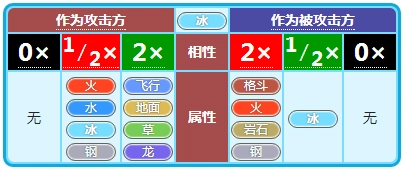 冰系克制飞行、地面、草、龙这几个属性,自身的弱点是格斗、火、岩石、钢属性,同时冰系还能抵抗冰属性。