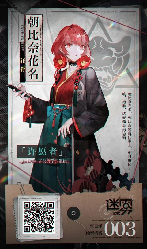 看着家人们为了保护自己而接连牺牲,这份沉重的打击让她不愿再仅仅作为被守护的对象。她向迷雾许下心愿,渴望拥有“守护他人”的力量,而代价是被取走了关于家人们的全部回忆……在漫长的漂泊岁月后,小雨邂逅了泉纱织等人,并加入了怪谈调查社,如今正全力争取通过试用期。
