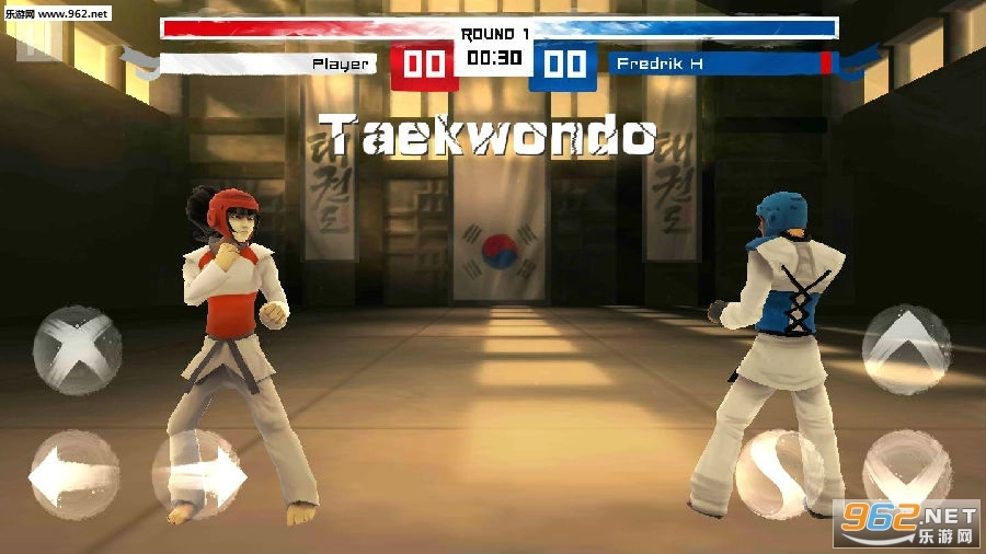 游戏过程中,玩家借助屏幕上的按键来操控选手完成移动、格挡、踢腿等一系列动作,而比赛的关键制胜点在于多次踢中对手的头部。