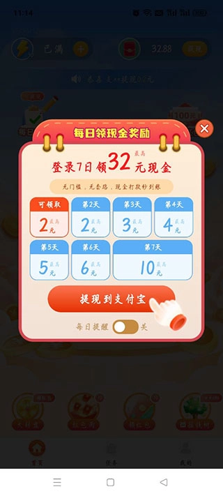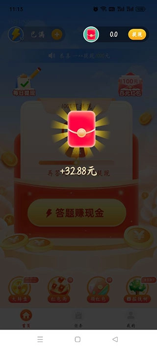 完成注册登录后,先领取新人红包,接着就能开启答题赚现金的活动了