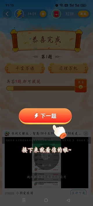 是不是特别简单?每答对一道题都能积累红包进度,等进度条填满了就能提现啦