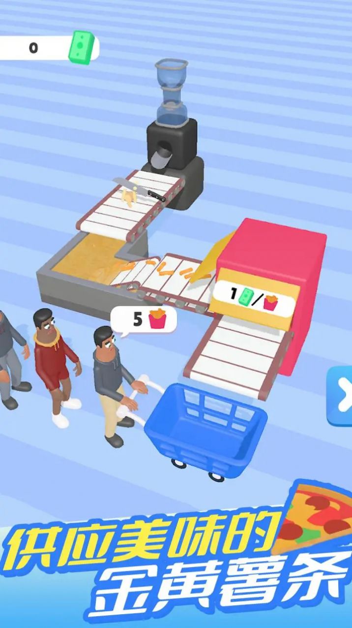 玩家将化身制造业巨头,借助自动化生产线制作薯条,持续拓展生产规模,抢占市场份额并获取利润。