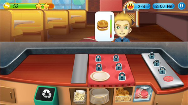 用赚取的游戏币购置新的食材、饮品和装饰品,让汉堡店更具吸引力。
