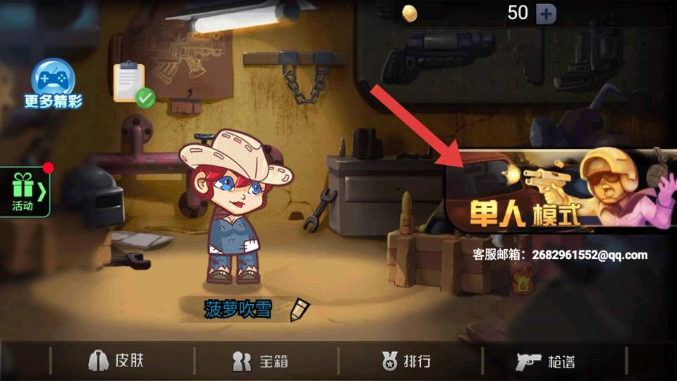 玩家进入游戏后,会看到单人模式的选项,点击该选项即可开启单人冒险之旅,随即进入跳伞选点的环节。
