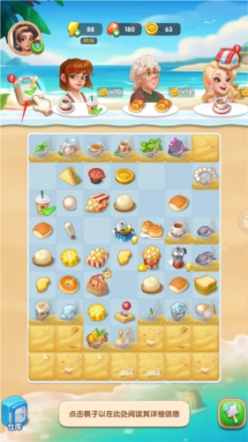 在这款沙滩大作战游戏里,玩家能通过合成食材来满足顾客需求,每完成一个订单都会得到对应的奖励,攒够金币后就能着手装修自己的餐厅了。游戏里的篮子可以生产制作食物需要的面粉,要是面粉不够,只要点击篮子就能获取。金币的获得不只是靠完成订单,玩家还得通过持续制作食物来挣钱,同时要留意体力的消耗。
