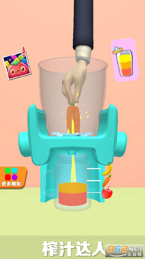 这款游戏操作简单轻松,极易上手。你只需不断混合各类水果与材料,模拟榨汁过程,就能解锁更多水果和道具,在体验榨汁乐趣的同时打发时间,感兴趣的话就来试试吧!