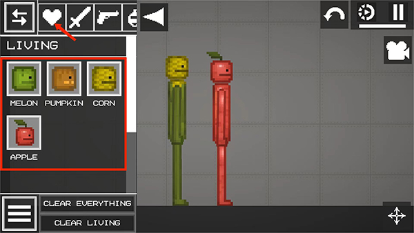 5、选择【爱心】图标,其中包含西瓜人、南瓜人、玉米人这几位人物形象,拖动对应的图标就能将其放置在地面上。