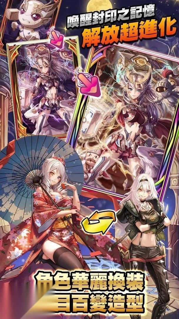 通过多样的任务,唤醒骑士们沉睡的封印记忆!秉持RPG养成的核心,助力骑士完成升级、进化、觉醒、重生,突破能力界限,组建专属于你的最强骑士团。创新加入换装系统,绚丽多变的造型让人眼花缭乱,忍不住想即刻开启一场精彩时装秀!