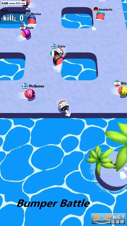 Bumper Battle的游戏规则十分简单,你只需拖动自己的战斗单位,撞击其他敌人使其离开舞台就行!多人同屏竞技的场景将再次呈现,把对方碰撞到水里就能让自身得到增长,你要不断变大去挑战高分,以此赢得游戏胜利。