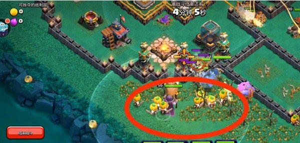 右侧红圈区域内有两名女武神,她们会自动破坏墙体,墙体被破坏后就会去攻击圣水罐。