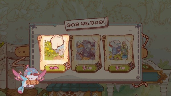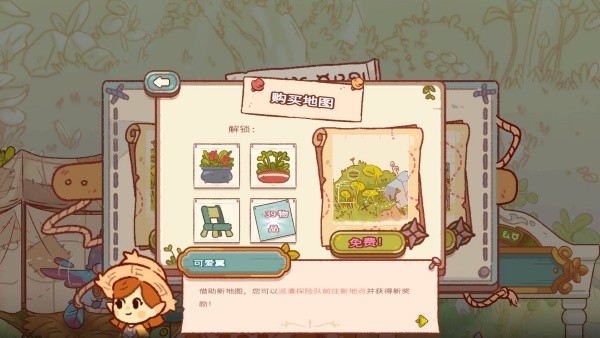 之后就能够去探索森林了,不过在此之前你得向这只小鸟买一张地图,第一张地图是免费的,买了之后会解锁新的家具物品。