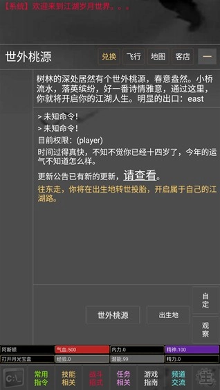 在游戏中,玩家能够通过常用指令查看个人背包,以及自身的综合属性与健康状态;同时,玩家还可以自由浏览排行榜上所有角色的排名情况,以及好友的相关信息。